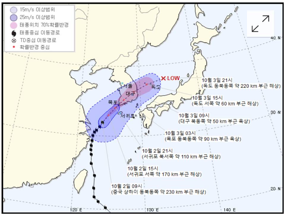 ◆ 예상 진로제주→목포→대구→독도