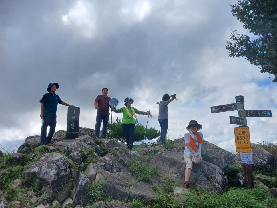 사무실 -> 구절암-> 구절폭포-> 출렁다리 -> 구절산주차장 -장좌마을 -> 구절산 정상 -> 장좌리마을 ->진주 상평동