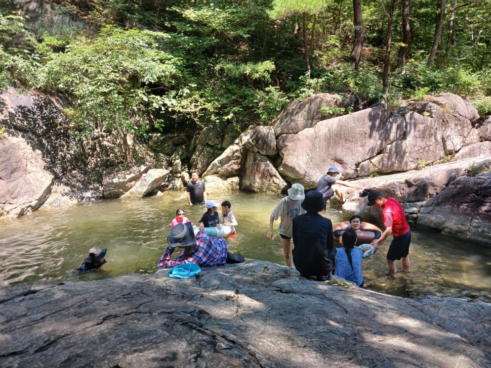 ■ 내용 : 건강걷기(1km), 계곡피서 (물놀이), 다슬기줍기, 자연 온돌 찜욕, 식사 등