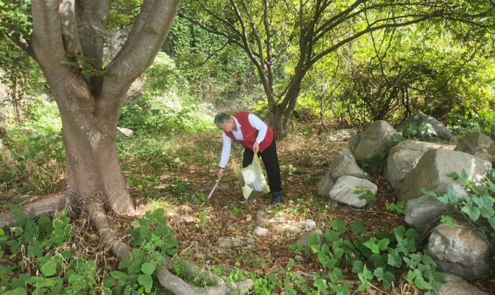 ○항구 주변에 방문객이 버린 쓰레기가 많아 수거 작업함