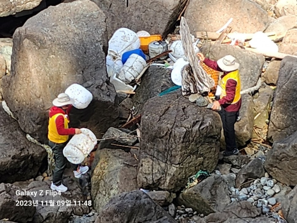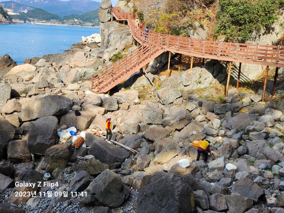 ● 호도마을 해안가 둘레길에 버려진 쓰레기가 다수 방치됨