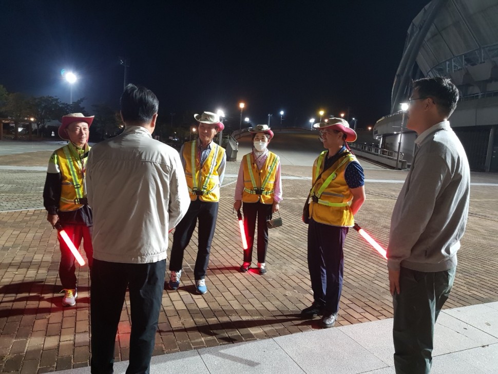 ● 안전순찰 코스 : 엠비씨네 주차장 -> 종합경기장 주변둘레길-> 롤러경기장 -> 종합경기장 정면 광장-> 엠비씨네 주차장-> KDS 주차장(소요시간 1시간)
